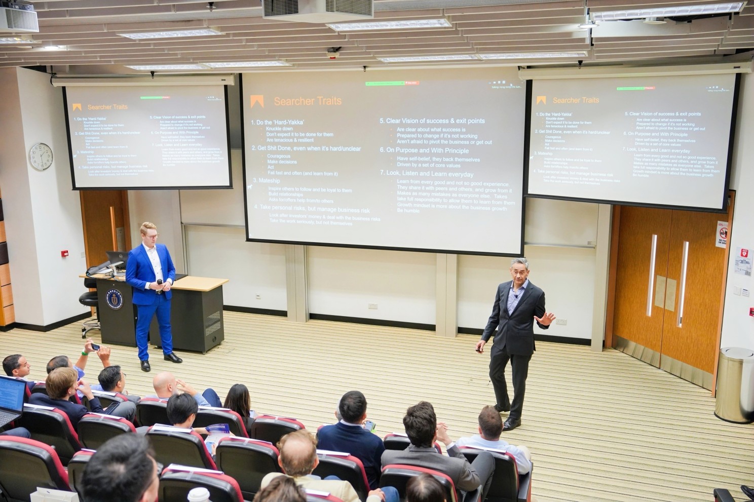 In the afternoon, the first featured speech, “How to Identify the Entrepreneur,” was delivered by Akram Sabbagh, Co-Founder of WayFinder Capital and Justin McGee Odger, Associate of WayFinder Capital. Drawing from their research “Fit for the Course: Finding the Right Jockey,” they presented the psychological and behavioral traits of successful searchers. Sabbagh emphasized that great searchers blend curiosity, humility, and grit, while emotional intelligence often outweighs technical skills. Odger shared data showing that successful searchers are forward-thinking, unconventional, and thrive under ambiguity. Both speakers encouraged participants to strengthen the regional community through open mentorship and peer collaboration, noting that “ETA is a journey best taken together.”